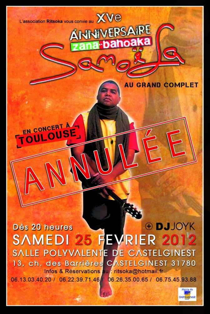 Bonsoir à tous, Nous avons le regret de vous informer qu'indépendamment de notre volonté, L'association Ritsoka, est dans l'obligation d'annuler l'annonce faite pour l'événement du 25 fèv prochain à la salle de fête de Castelginest.