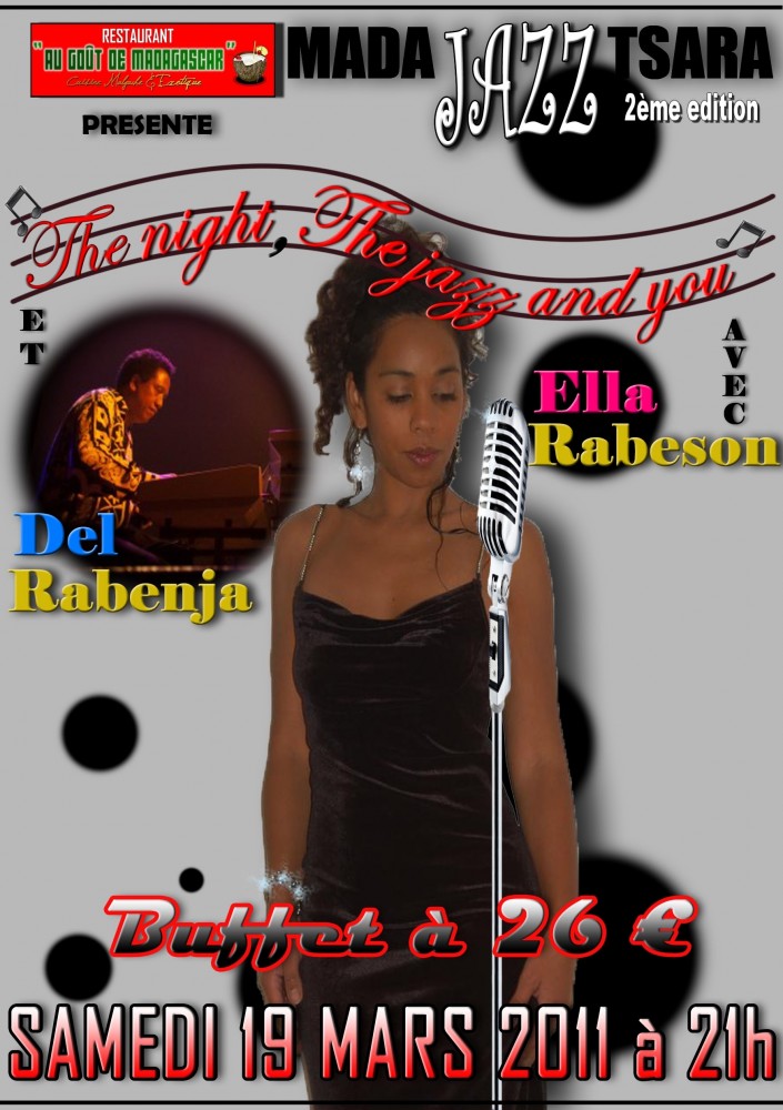 soirée jazz avec 2 grandes vedettes: Ella RABESON et Del RABENJA avec un buffet.