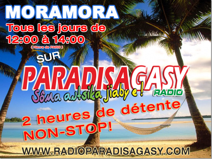 Mora Mora, tous les jours de midi a 14:00 sur Radio Paradisagasy, votre espace douceur, tendresse, détente, relax avec une séléction de slows 100% Malgache.