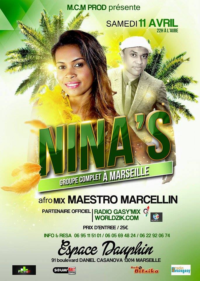 M.C.M Prod Presente NINA'S GROUPE COMPLET à MARSEILLE LE SAMEDI 11 AVRIL, PARTIE MIX AFRO AVEC MAESTRO MARCELLIN.