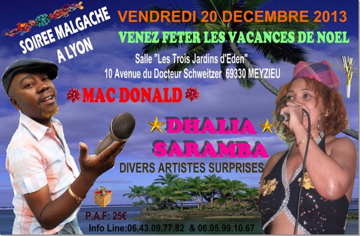 Une grande soirée dansante malgache à Lyon avec Mac donald et Dhalia saramba et d'autres artistes surprises. TONGAVA MARO EH