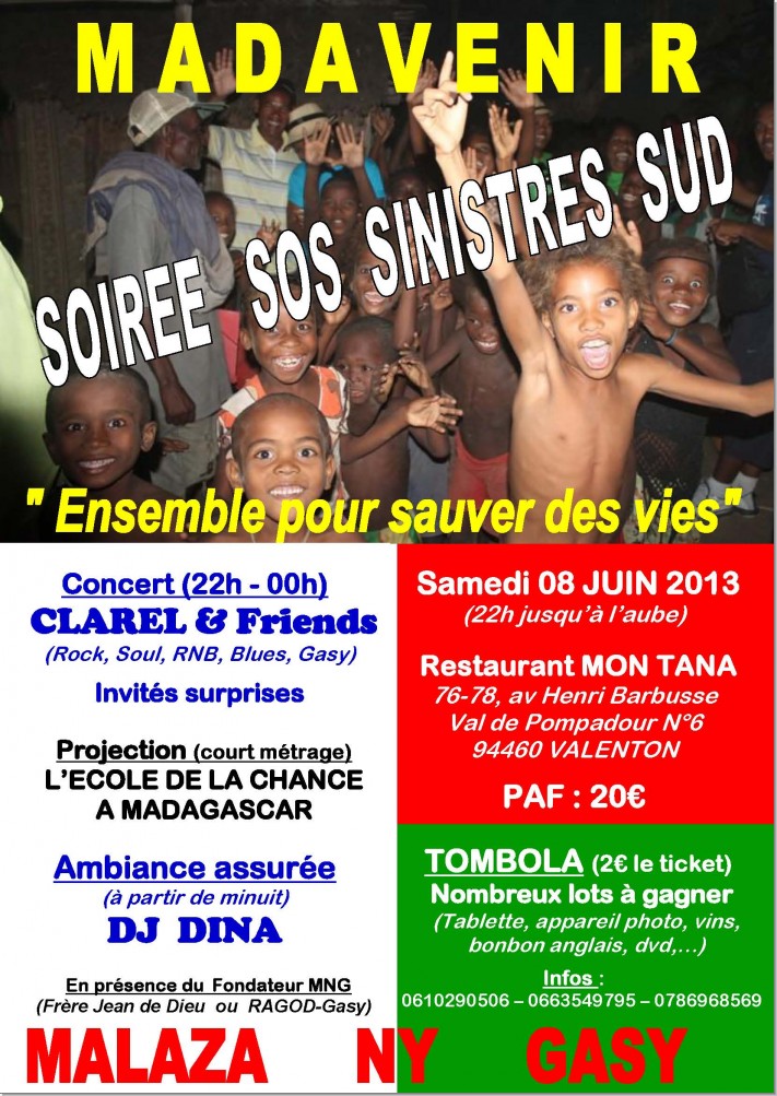 Soirée SOS Sinistrés Sud à Paris : Mon Tanà Samedi 08 Juin 2013